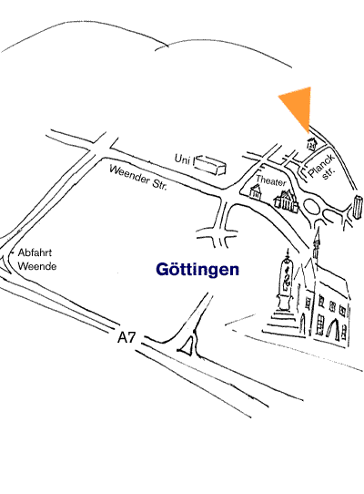 BAB A7 Abfahrt AS Göttingen dann B3 geradeaus Nikolausberger Weg, 2.rechts in Bühlstr., 2. links, rechts, links in Planckstr.